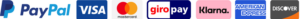 Zahlarten: Kreditkarte, Klarna, Überweisung.